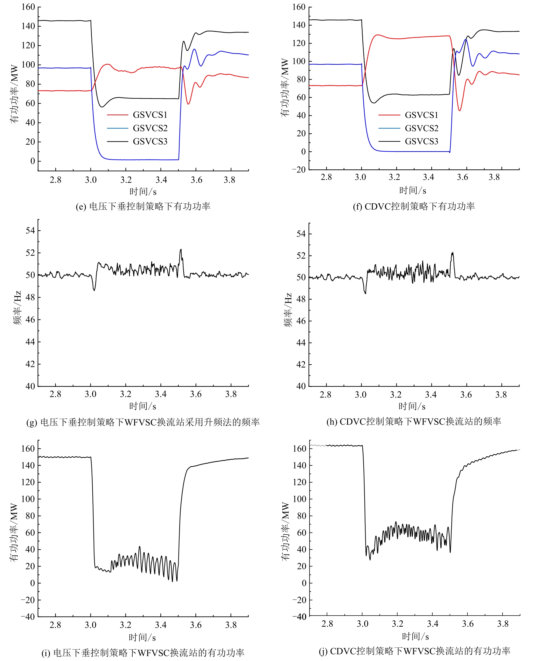 | 图9 严重交流故障时不同控制策略效果对比 |