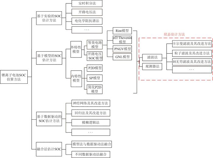 本文将锂离子电池SOC估计方法归纳为以下4类[5]: