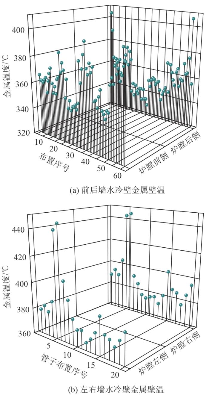 机组低负荷连续运行监测的数据表明,四周水冷壁和隔墙水冷壁出口处金属温度均未出现超限情况,各相邻水冷壁温差和全部水冷壁管最大温差未超出限值,因此30%额定负荷工况下锅炉水动力总体安全。