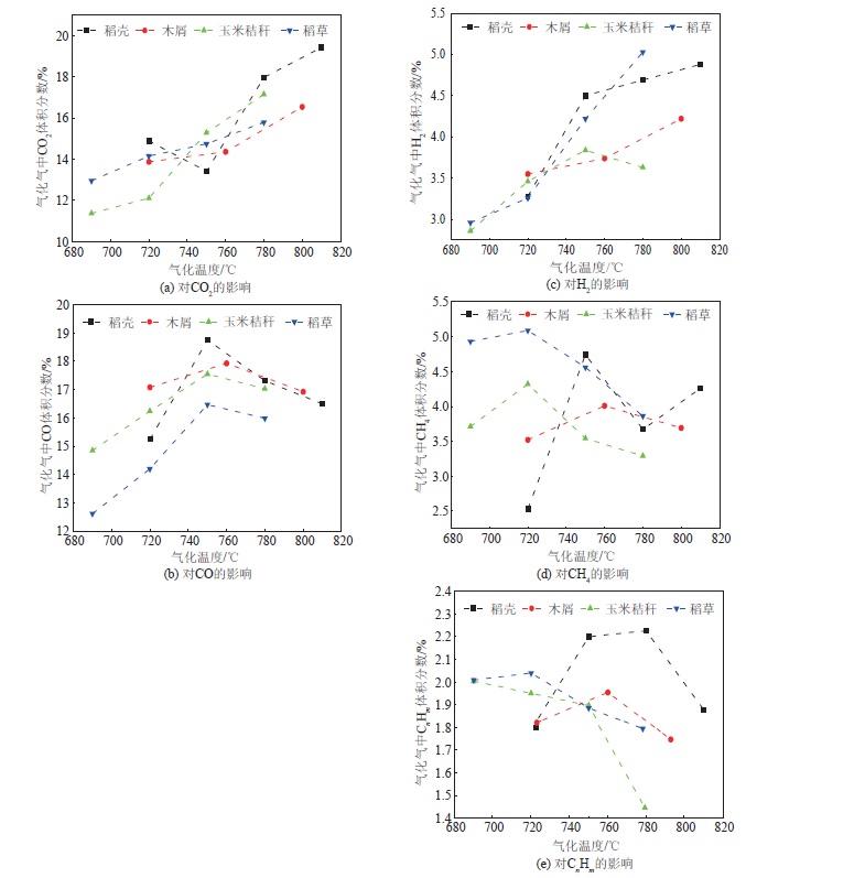 | 图7 不同气化温度对气化气组分的影响 |