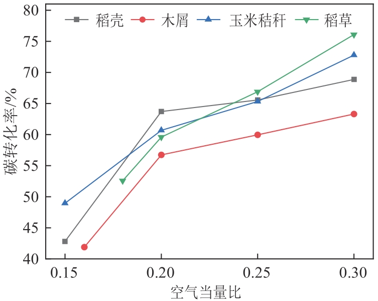 | Fig. 5 Effect of air equivalent ratio on carbon conversion rate |