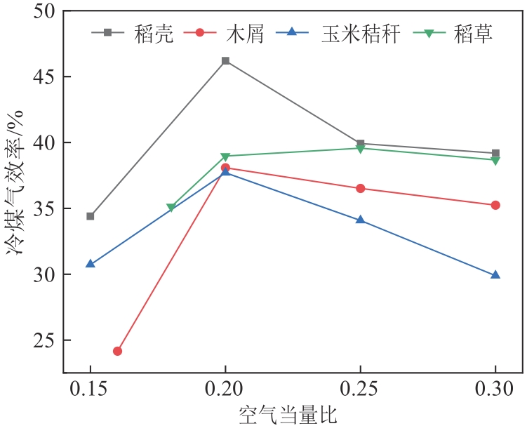 | 图6 空气当量比对气化冷煤气效率的影响 |