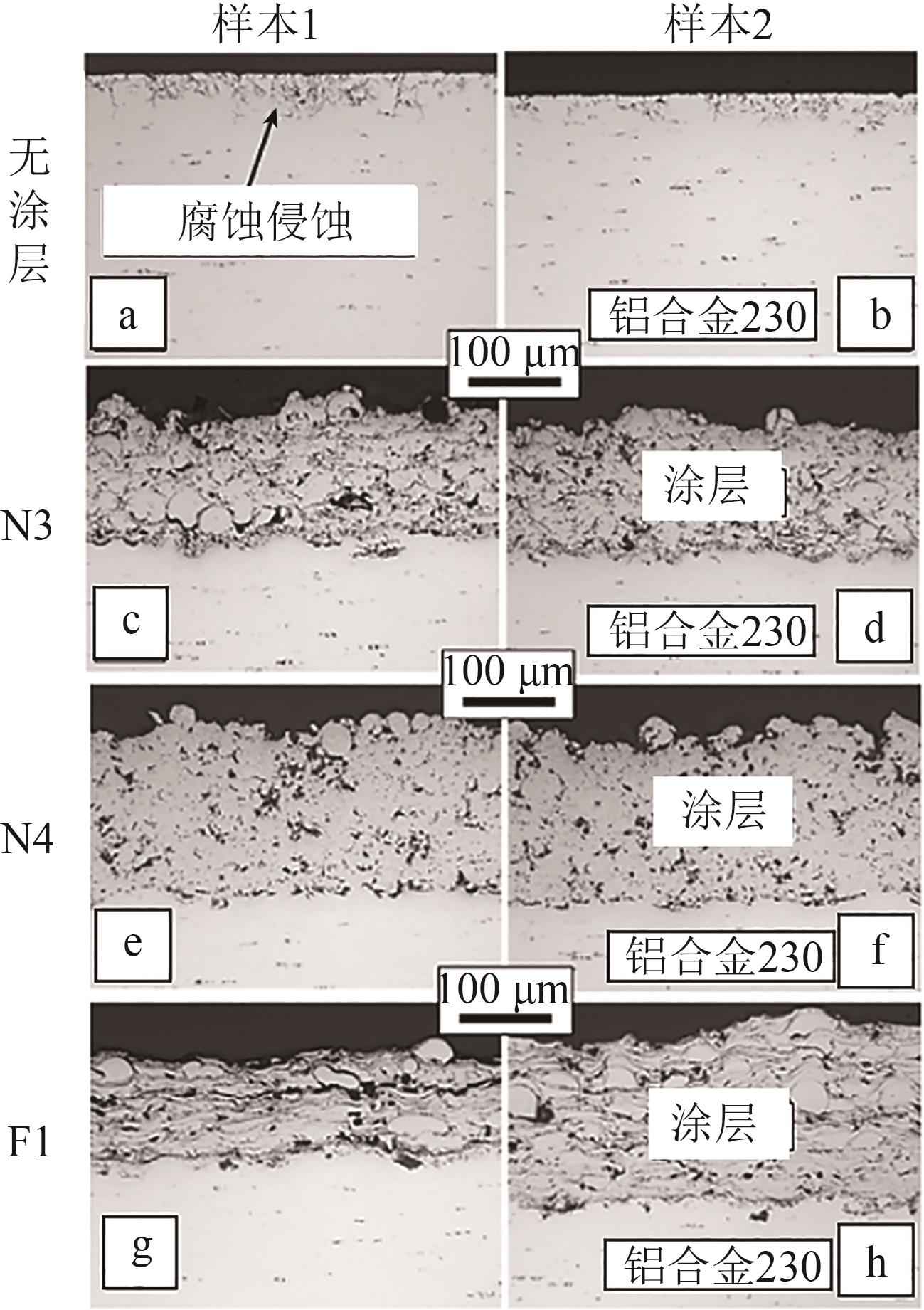 图3 铁基全非晶涂层和镍基部分非晶涂层在750 ℃下暴露于KCl-MgCl2中300 h后合金腐蚀情况