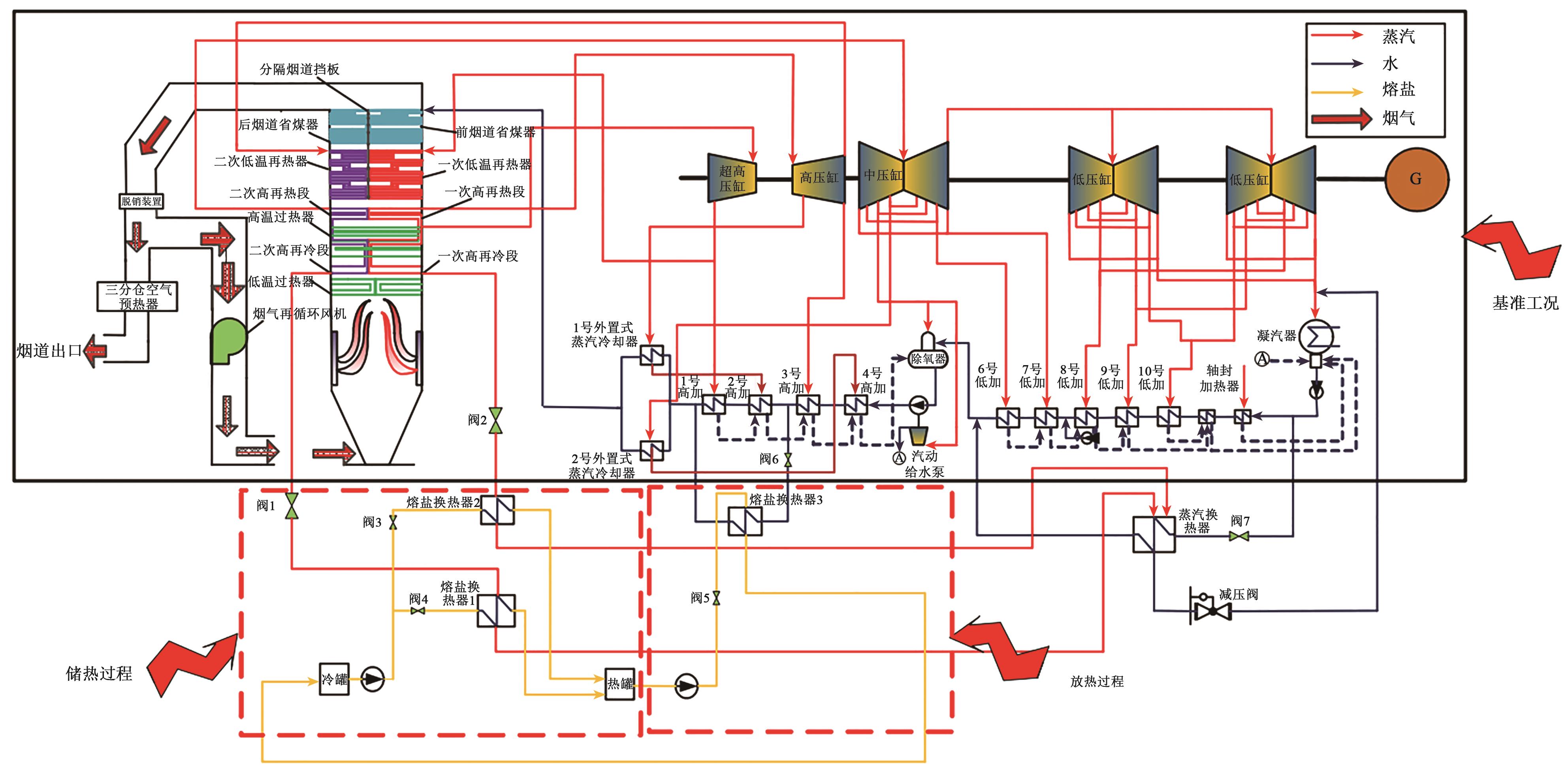 图10 集成高温熔盐储热系统的超超临界二次再热机组系统