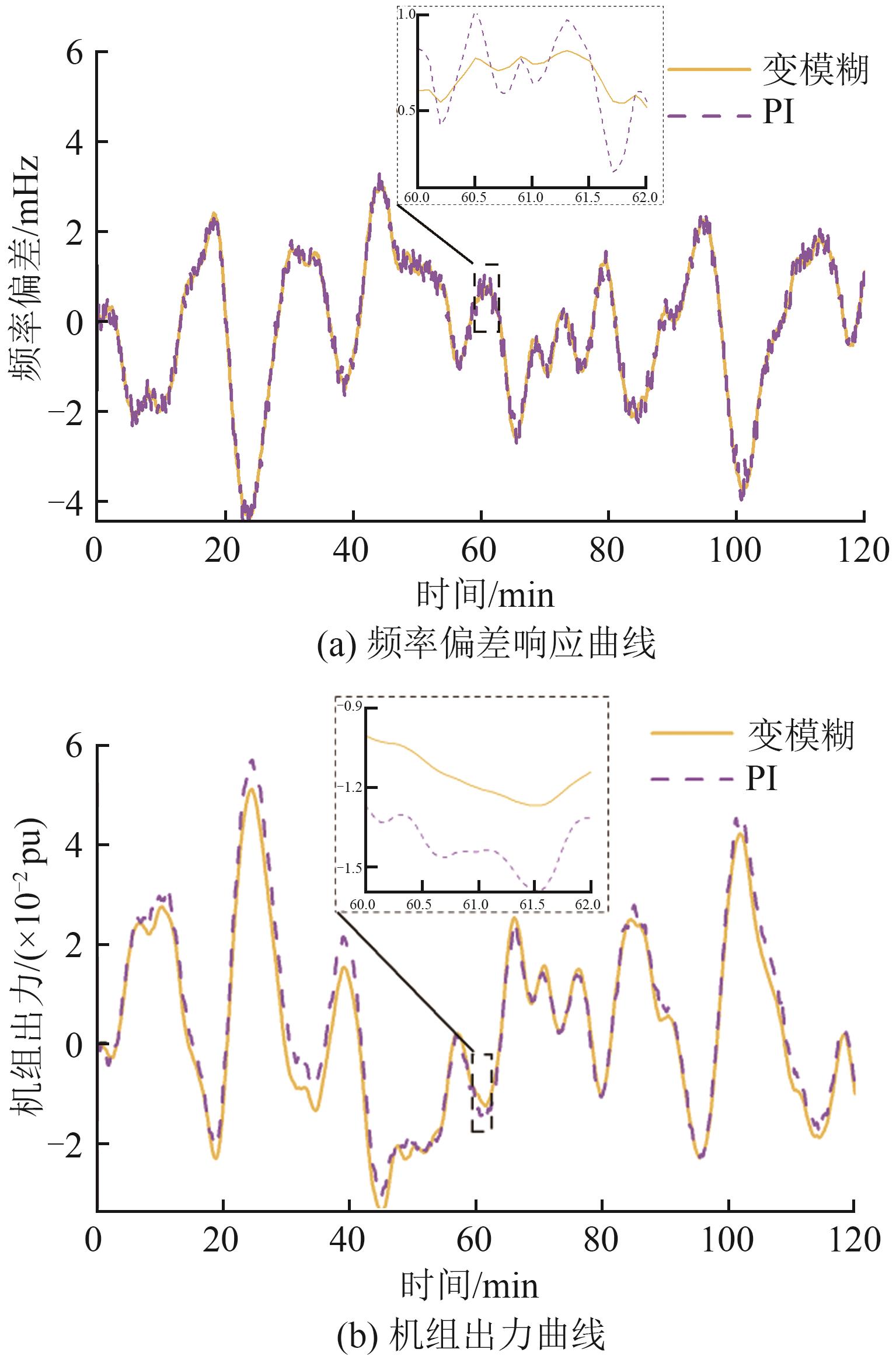 目的 针对电池储能辅助火电调频存在难以应对高幅、高频扰动的问题,提出一种基于分层自适应控制的混合储能参与二次调频控制策略。 方法 外层讨论系统剩余能量与比例因子之间的关系,提出基于数学函数方法的比例因子自适应控制策略,在系统当前调频能力的基础上合理分配区域控制信号;同时对内层机组与储能出力进行优化控制,使用变模糊PI控制机组出力,使用变时间常数低阶滤波的双层模糊控制储能出力,在保证储能不过充、过放的前提下,对调频信号进行自适应分配;并使用连续负荷扰动进行仿真分析。 结果 所提比例因子自适应控制策略相比传统定