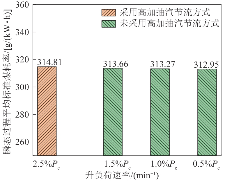 Fig. 6 Comparison of average standard coal consumption rate of unit during transient process under different load increase rates