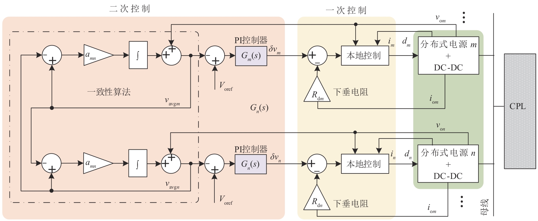 变换器输出电容Coj /mF 变换器电阻rj /Ω 变换器电感Lj /mH 线路电阻roj /Ω 线路电感Loj /mH 母线电容Cbus /mF 二次控制环路PI参数Kpllj,Killj 本地控制电压环PI参数Kpvj,Kivj 本地控制电流环PI参数Kpcj,Kicj 下垂系数Rdj | 1.5~2.5 0.02 1 0.01~0.03 0.3~0.5 1.5~2.2 0.1~0.9, 20 0.1~0.9, 40 0.5, 50 0.05~0.20 |