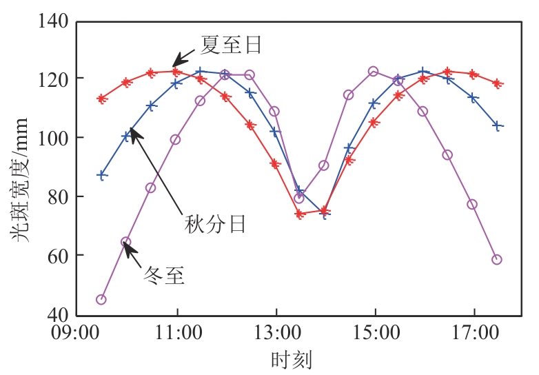 Tab. 1 Comparison of average light spot widths of D-type reflector at different times on spring equinox
