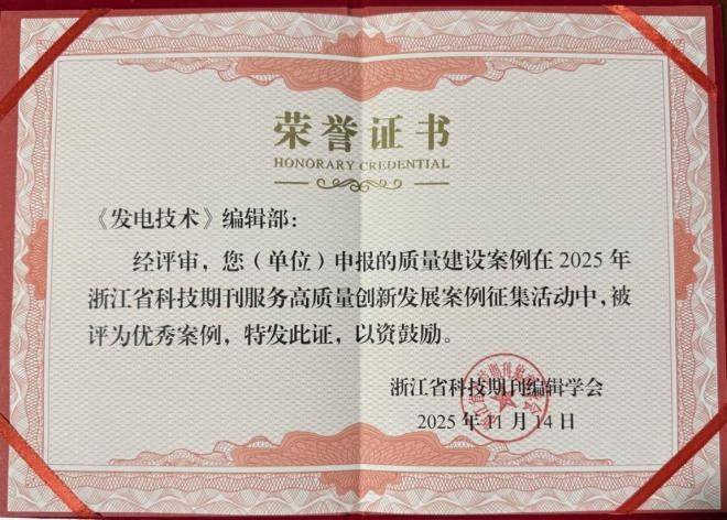 未来,《发电技术》将以此荣誉为新起点,继续坚持以服务能源科技领域创新研究工作为核心,持续加强内容建设,深化融合发展,提升期刊的学术影响力与品牌美誉度。