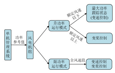风电场参与电网功率调度的直接单元是各台风电机组,当风电场场站级控制系统接收到来自电网调度部门下达的调度指令后,再把优化后的下一周期功率参考值下发到各台风电机组,由各个单机控制系统来具体执行相应的功率输出。