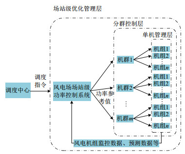 分层控制策略一般将风电场内的控制系统分为若干层,从场站级控制层面到单机控制层面,逐层优化调度指令,从而实现风电场有功功率控制的准确度。