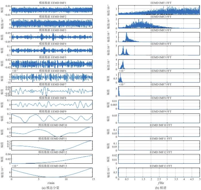 VMD是Dragomiretskiy提出的非递归信号分解方法,实质是变分问题,根据预设模态分量个数对信号进行分解[26 ] 。该方法通过一个自适应维纳滤波器组将原始信号f (x )分解为K 个中心频率为ωk 的模态函数uk ,其中K 为预设模态分量个数。VMD算法在抗噪声和非平稳信号处理方面具有较好的性能和较高的运算效率,可以分解出直流分量。