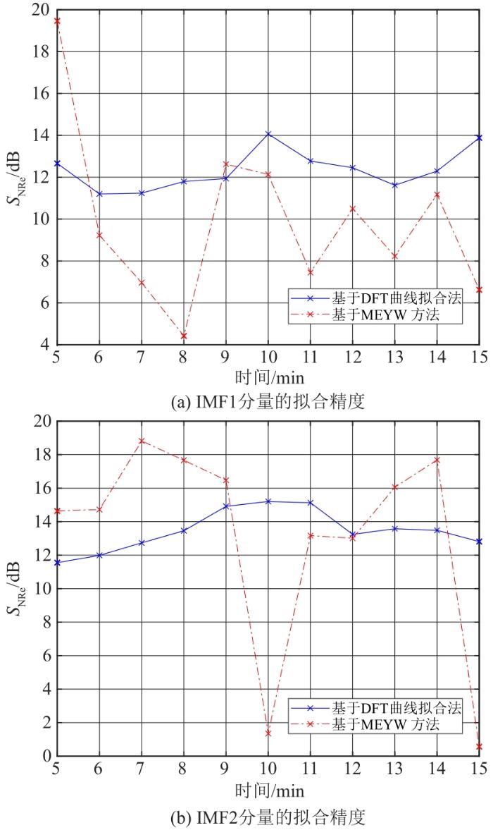 信号拟合曲线与原信号越接近,辨识结果精确度也越高。拟合精度采用信噪比S NRe 为指标,单位为dB。