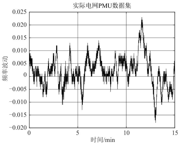 式中:v [ n ] = v ( n T s ) ;q k [ n ] = q k ( n T s ) 。式(15)和(16)的系数分别为:η 1 = - ( 1 + e - T s / τ D ) ,η 2 = e - T s / τ D ,η 3 = ( 1 - e - T s / τ D ) / K s ,μ k , 1 = - 2 × e - ζ k ω k T s c o s ( ω ¯ k T s ) ,μ k , 2 = e - 2 ζ k ω k T s ,μ k , 3 = γ k ω ¯ k × e - ζ k ω k T s s i n ( ω ¯ k T s ) ,其中τ D = 2 J / ( K s f 0 ) ,ω ¯ k = ω k 1 - ζ k 2 ,ARMA模型即可用程序模拟生成类似真实PMU的频率数据。