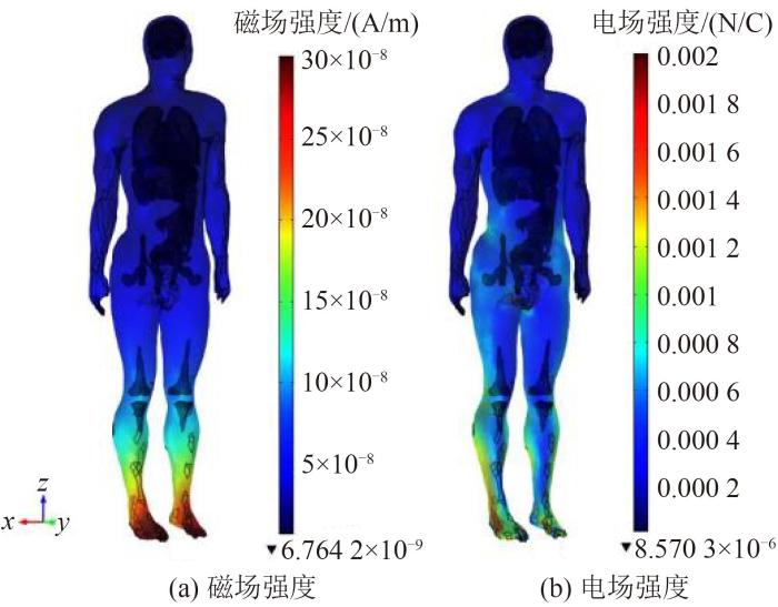 无线充电车内人体器官磁场与电场强度图