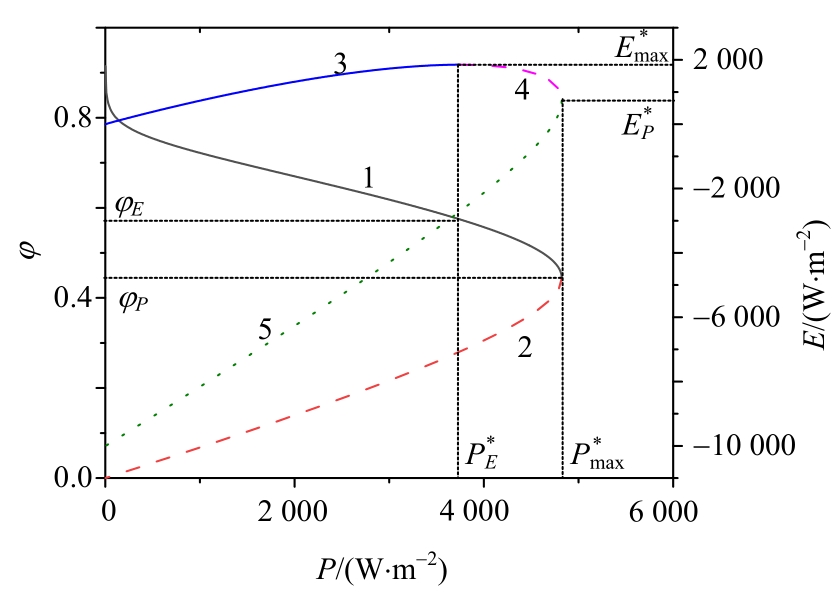 图4 ?效率和生态函数密度随功率密度的变化情况 |
