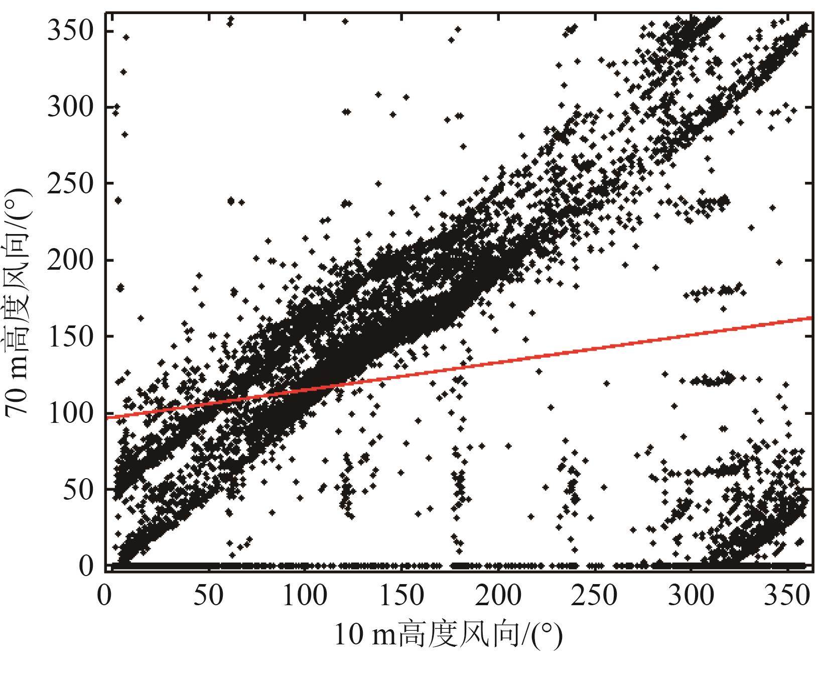 | 图8 10 m与70 m高度之间风向相关性 |