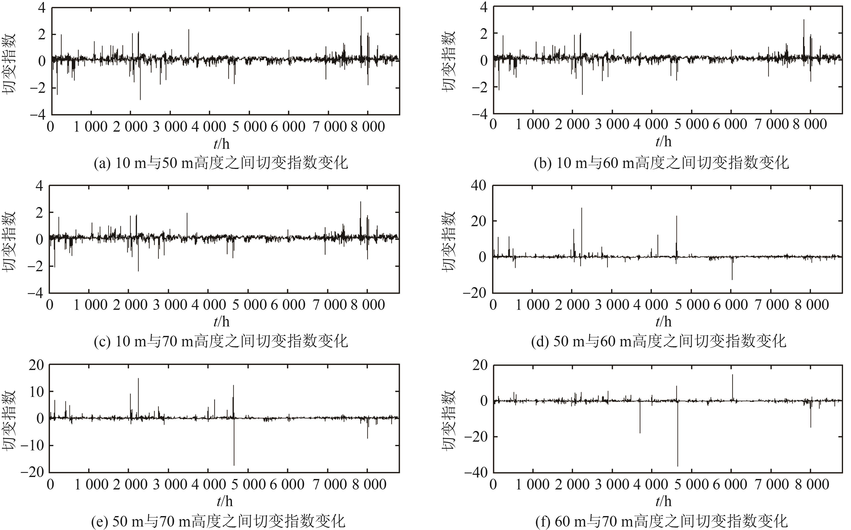 | Fig. 9 Wind shear index changes between different heights in 2005 |