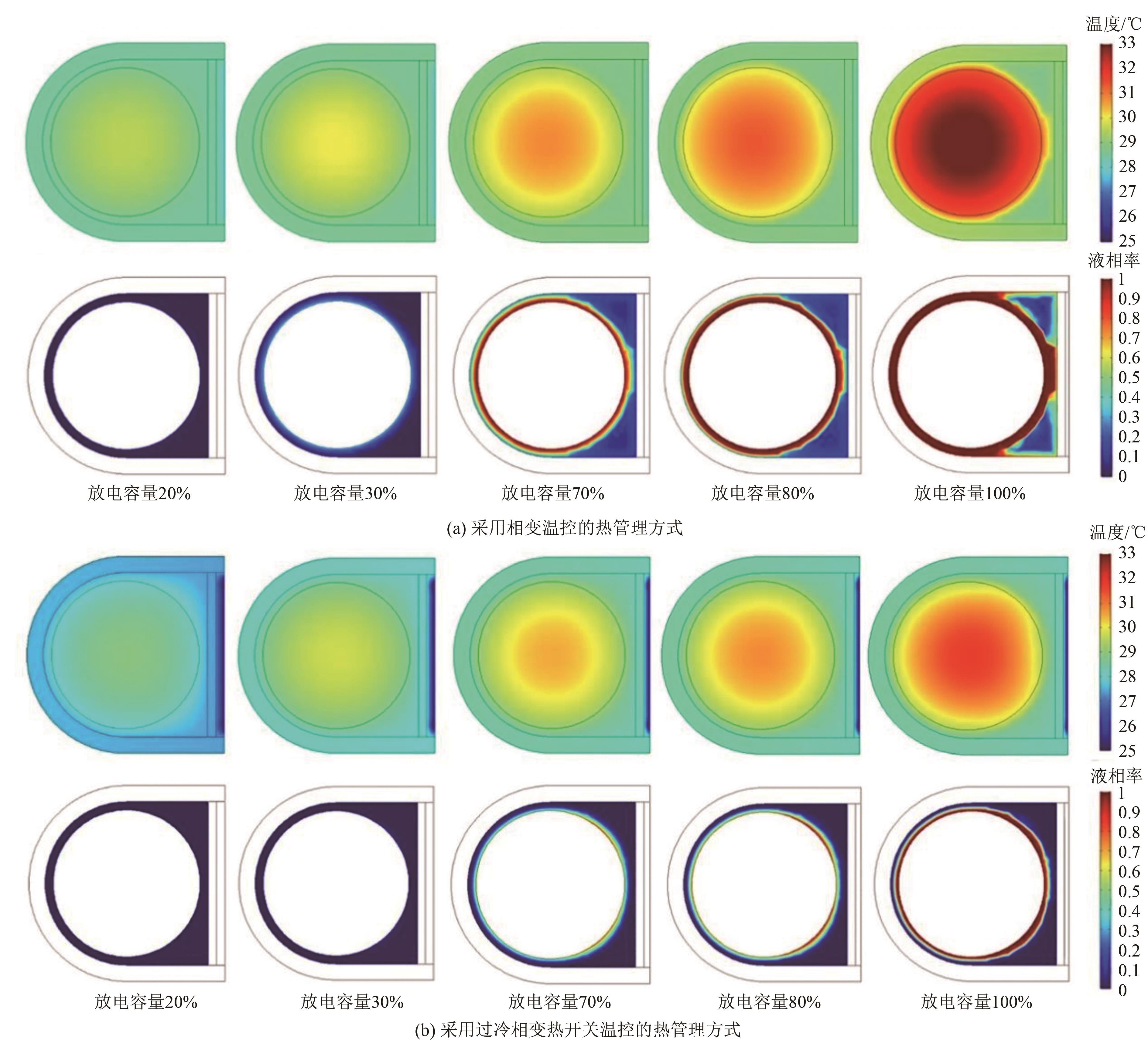 | 图8 电池温度的变化及相变材料液相率的变化 |