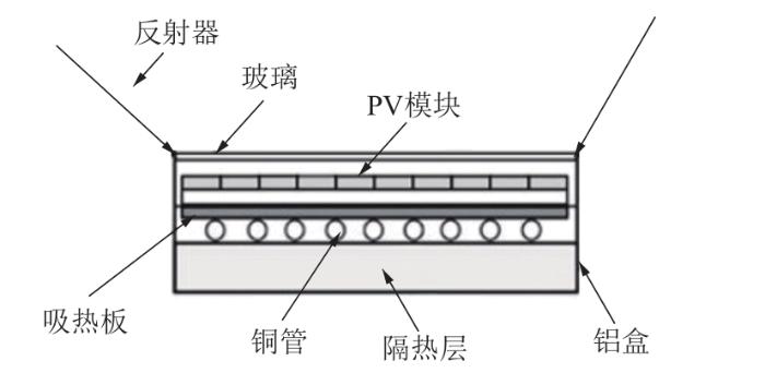 ... 一个典型的PV/T模块[9]如图1所示,主要组件包括玻璃盖板、光伏电池组件、吸热板、隔热层以及冷却通道.工作时太阳辐射经PV电池板产生电能和热能,吸热板吸收热能后通过冷却介质将热能带走,并将这部分热能提供给空间供暖或热水等应用. ...