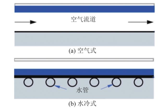 ... 基于空气或液体冷却的典型PV/T模块[15]如图3所示,在空气冷却式PV/T模块中,气流通道介于吸热板和PV面板之间,夹层中的空气通过自然对流或风扇等产生强制流动来冷却光伏板;在基于液体冷却的PV/T模块中,吸热板通常被粘在PV面板背面,同时在吸热板的背面焊接管道以吸收和传输热量. ...