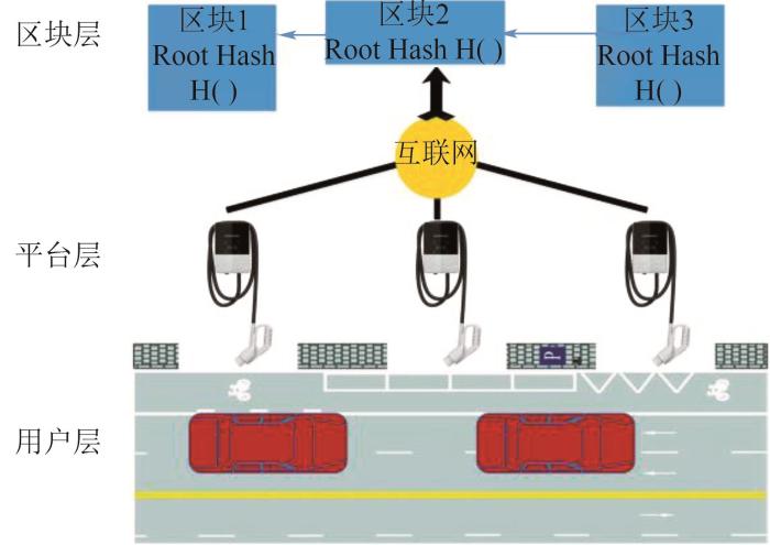 区块层由按时间顺序将充电交易信息打包的块链接构成,在区块层中,所有的私有充电桩作为对等节点组成分布式网络。充电交易完成后,私有充电桩通过互联网将交易信息上传至平台,交易信息由网络其他节点监督和审定,交易记录不可伪造、修改。