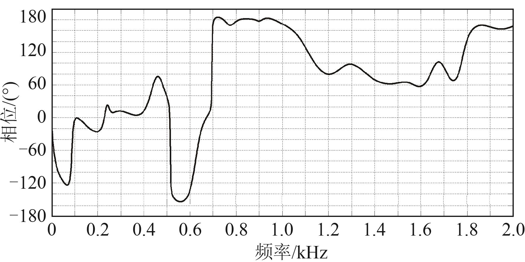 | 图8 换流器(电压前馈加低通滤波器)与交流线路阻抗相位差频率特性 |