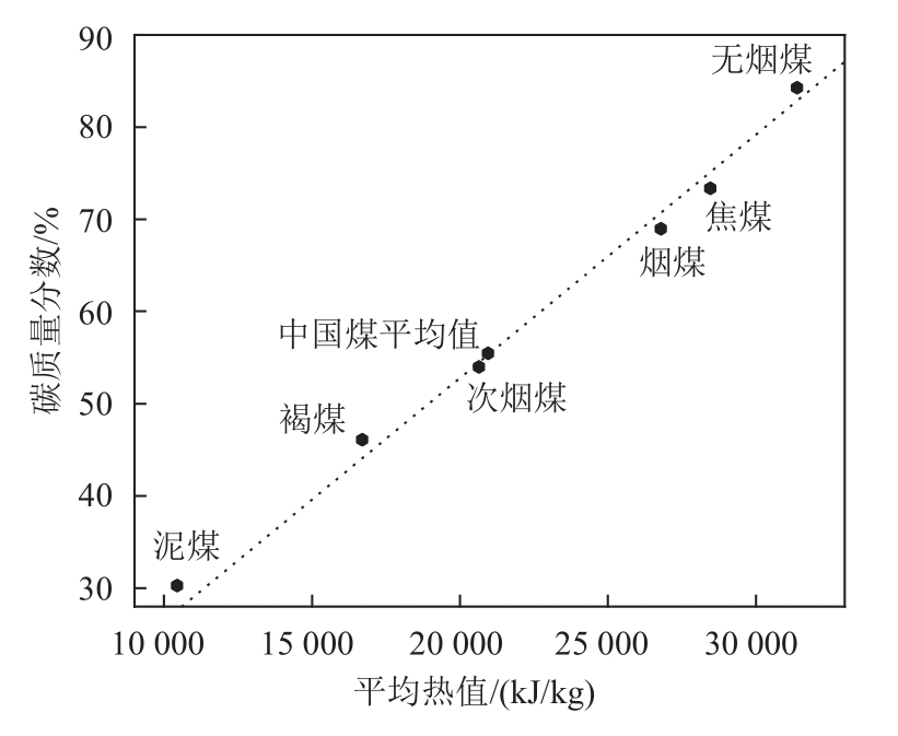 | Fig. 1 Average calorific value and carbon content of different coal types |