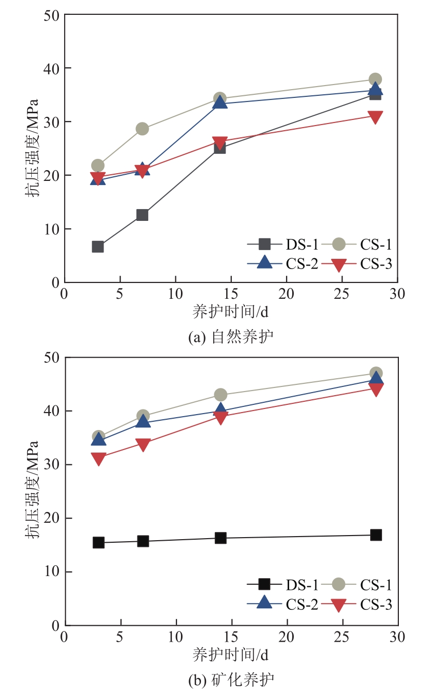 | 图8 不同配比的试件在自然、矿化养护下的抗压强度 |