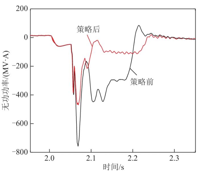 2)故障后电压上升过程中降低MMC交流电压参考值,可以减少电压恢复过程中MMC输出无功功率,使系统暂态过电压降低。