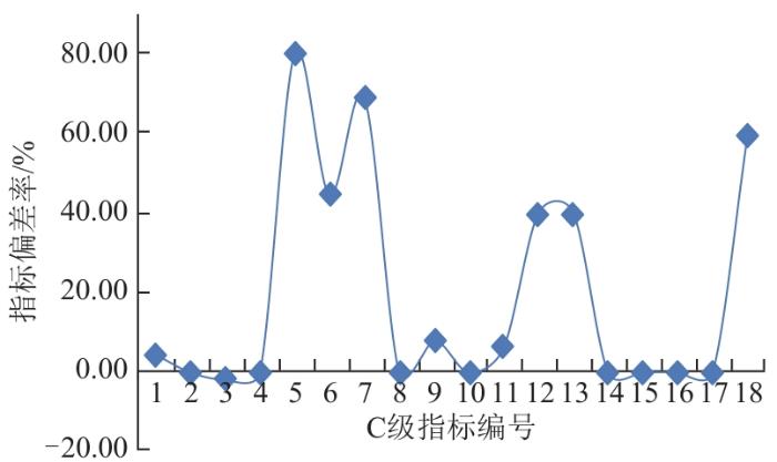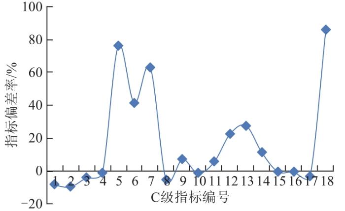 首先,计算2家供电公司电网发展维度18个指标的评价结果差异情况,具体如图3所示。