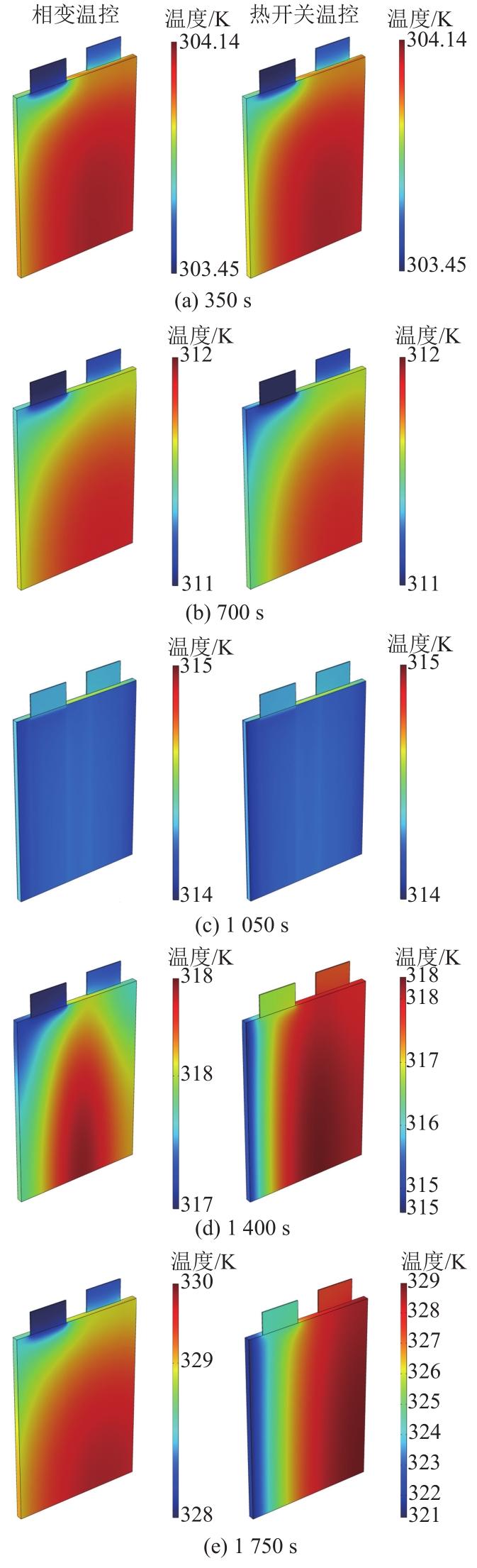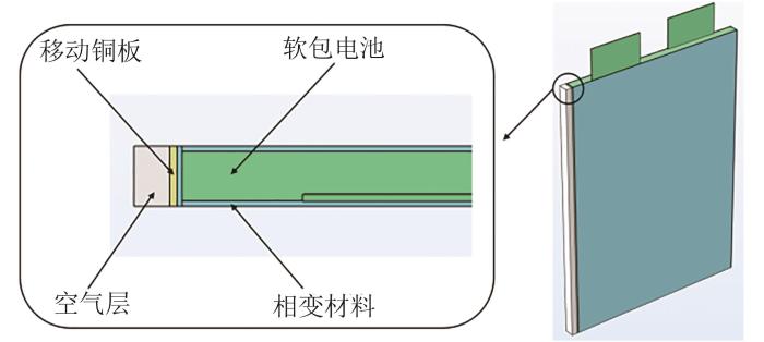 电池热管理旨在使电池组工作温度稳定在合理区间并具有一致性,既包括在低温环境下工作的保温供热,也包括在高温环境中的散热冷却[10]。针对低温加热保温问题,目前主要分为内部加热与外部加热两大类,内部加热主要有电池自身系统加热等,外部加热主要有正温度系数(positive temperature coefficient,PTC)加热,以及气体液体加热等。如,针对锂离子电池组设计的二氧化硅气凝胶板保温外壳[11],通过降低保温材料的导热系数可以显著提高保温效果,满足短暂停车的保温需求。针对电池组高温散热问题,目前采取的热管理方式主要有空冷式、液冷式、相变材料(phase change materia,PCM)冷却和热管冷却等方式[12]。空冷式冷却系统以空气作为冷却介质,具有结构简单、能耗低等特点,但由于空气的导热系数较低,在电池高倍率放电时冷却效果往往较差,电池组存在温度分布不均、温差较大的问题[13],常需要通过增加导流板来增强对空气的引导作用,以改善散热效果[14]。液冷式系统具有良好的散热效果,但由于流体的流动阻力较大,相较于空冷,在同样的流速下液冷会消耗更多的泵功,造成能耗增加。液体的密封与保存同时也增加了换热结构的复杂性,热管理系统的成本也会随之增加[15],目前液冷研究多集中于对不同形态冷板的优化设计等方面[16-22]。基于相变材料的电池热管理方法因具有良好的控温效果而引起广泛关注。在电池温度升高时,相变材料通过相变的方式利用自身潜热吸收电池产生的多余热量来调控电池温度,当环境温度过低时,相变材料也可释放存储的热量,使电池工作在合适的温度区间。相变材料与液冷[23]、热管[24]等方式相结合,能够取得良好的控温效果,将电池温度控制在合理的工作区间的同时起到保温蓄热的效果。
