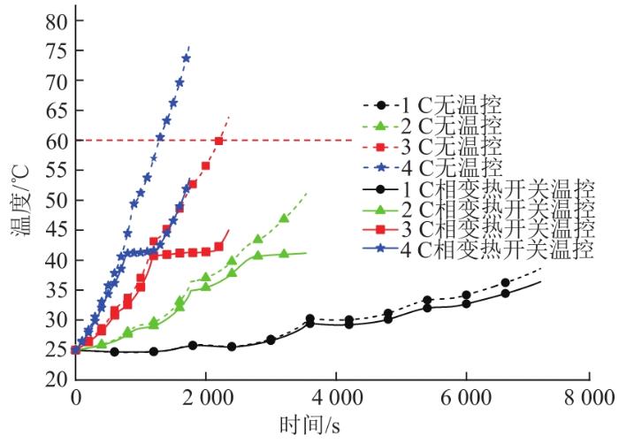 In view of the battery thermal management system, this paper proposed a new battery temperature control device based on the phase change material stearic acid and thermal switches. The device is applied to the pouch cell. The cooling and heat preservation abilities were studied based on numerical simulation. It provides the passive drive for the thermal switch based on the volume change characteristics of the organic phase change material stearic acid during the phase change process, which can effectively dissipate heat when the battery temperature increases. Thermal energy dissipation is decreased when the battery is used in a cold environment. The numerical results show that, compared with the battery without the thermal management system, the temperature control system with the phase change material and thermal switch reduces the battery temperature by 22.46 ℃ at the end of the 4 C rate charge and discharge. When the external ambient temperature is -20 ℃, the novel thermal management system prolongs the battery temperature management time by 390 s.