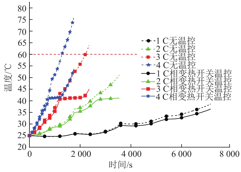 | Fig. 6 Temperature variation of batteries with different discharge rates |