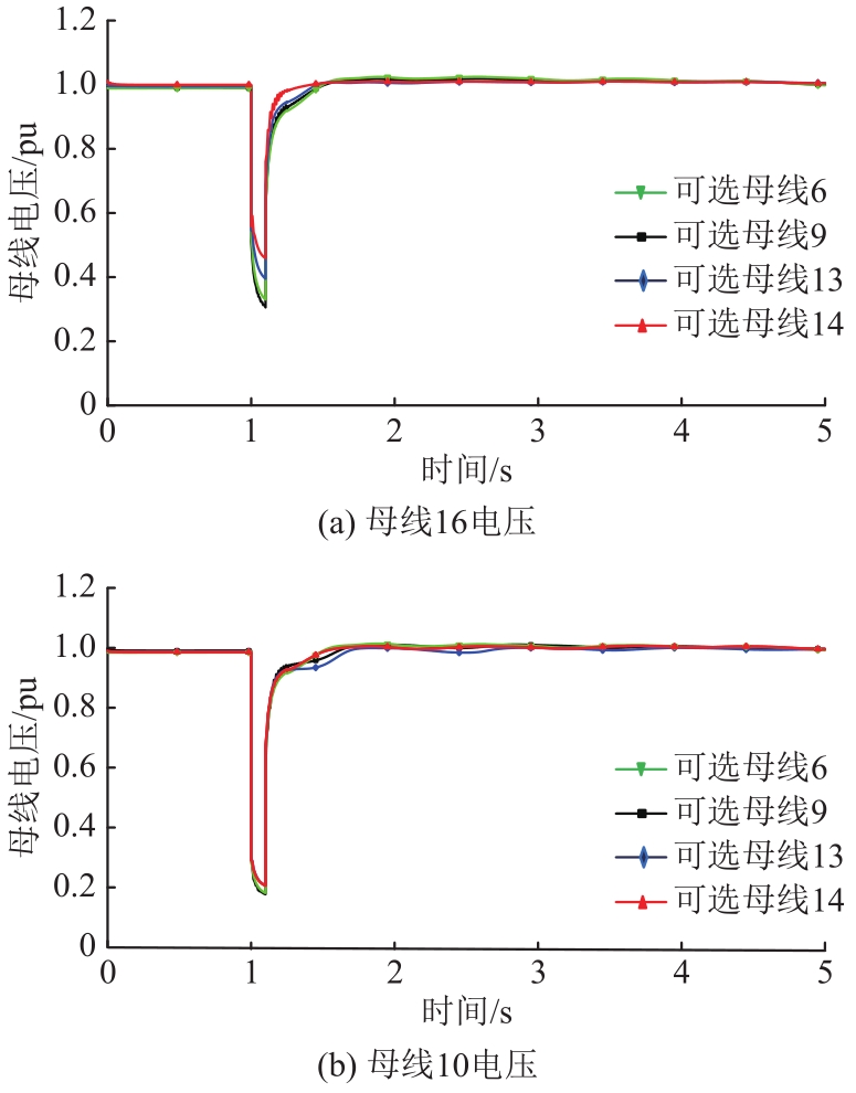 | 图2 1—2支路500 kV线路故障下典型母线电压 |