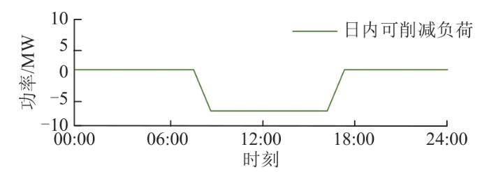 可削减负荷的目的是在系统允许的前提下,采取分时电价在高峰时期削减部分机组的用电量,进而减少系统用电量,实现经济性。其表达式为