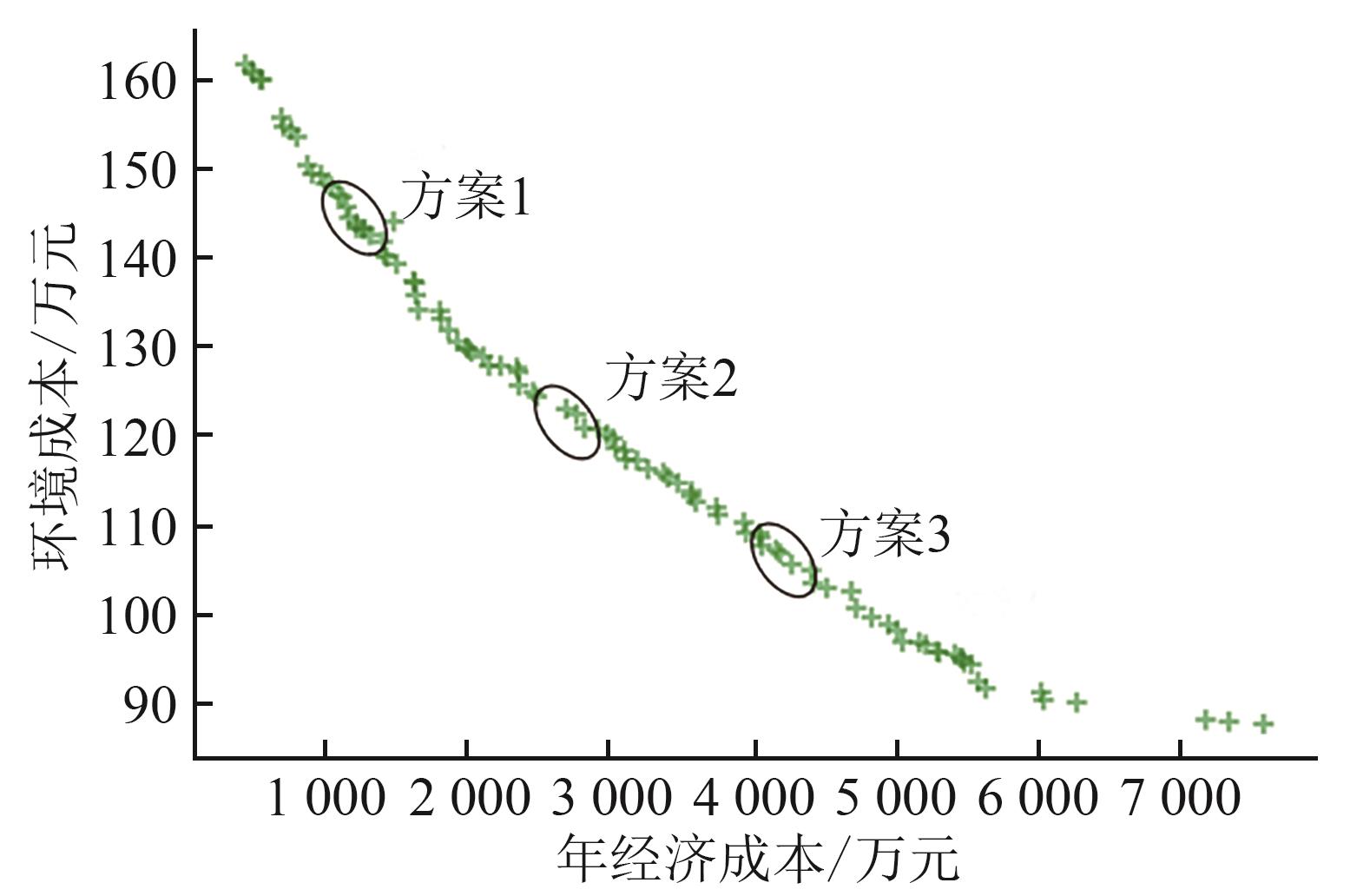 Fig. 5 Pareto frontier solution of the first-stage planning model |