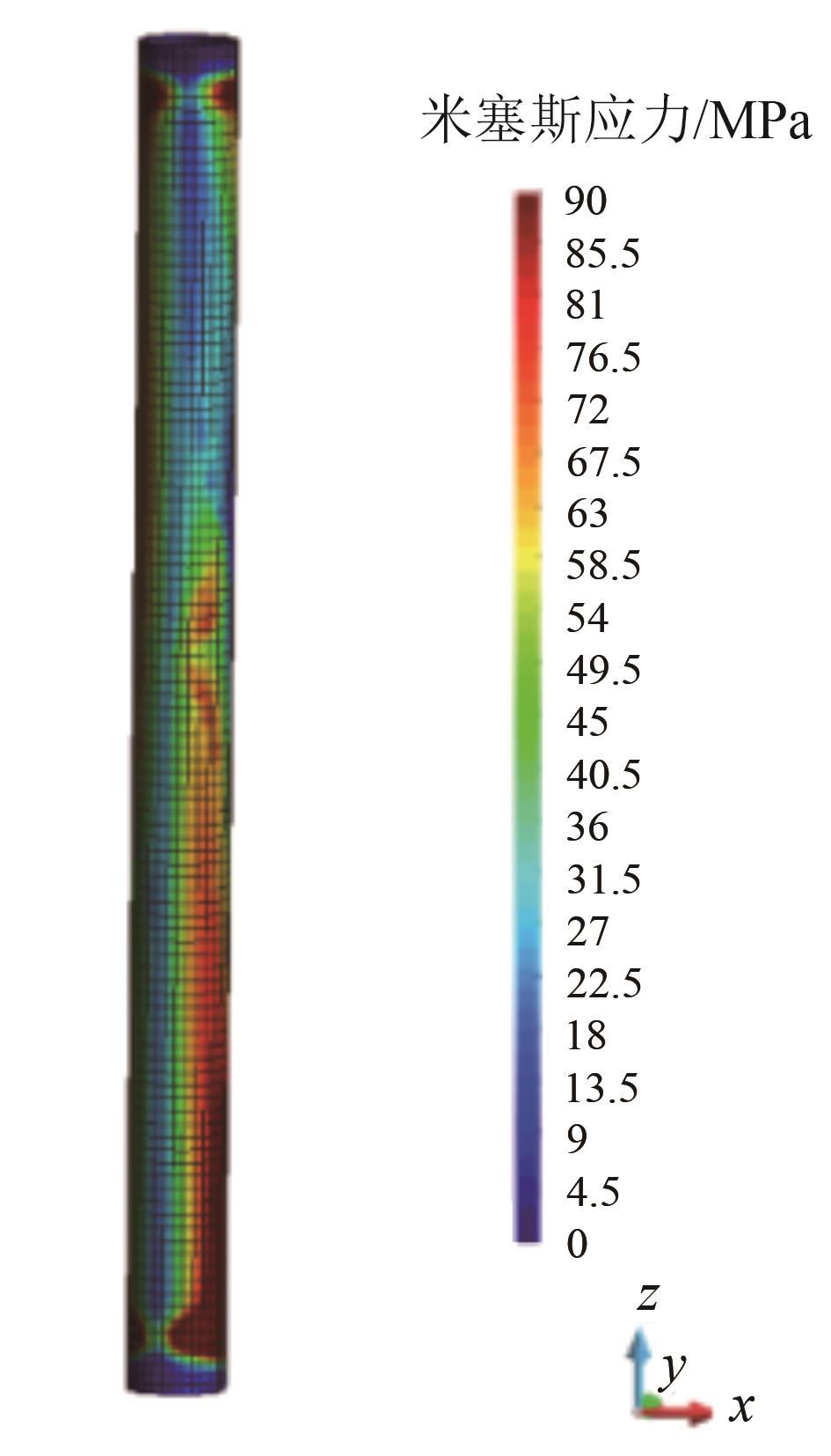 | 图13 t=34 s时塔筒米塞斯应力云图 |