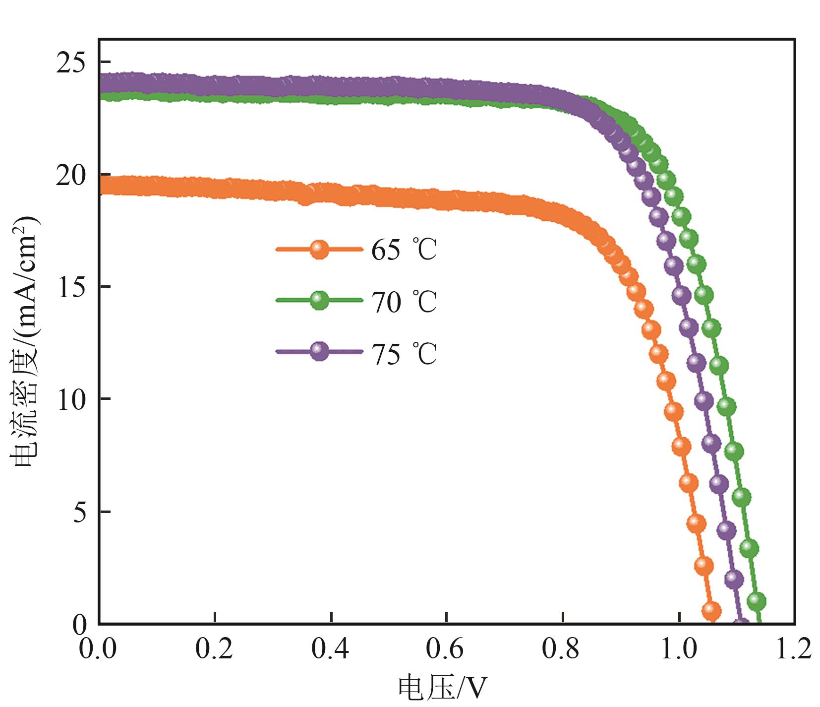 | 图5 不同PbI2退火温度下最优电池J-V性能曲线图 |