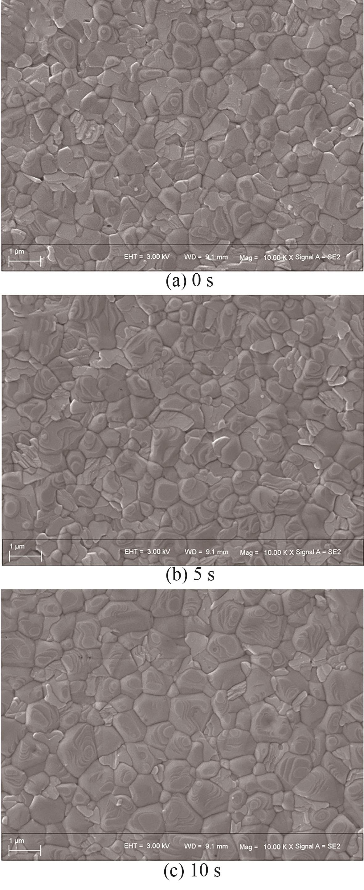 | 图16 滴加胺盐溶液后不同静置时间所得钙钛矿薄膜的表面SEM图 |