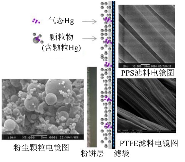 1)根据机理分析,袋式除尘器在高效除尘的同时会脱除绝大部分的颗粒Hg,滤袋表面沉积的一层粉饼层对气态Hg等污染物也具有很强的过滤吸附效果。