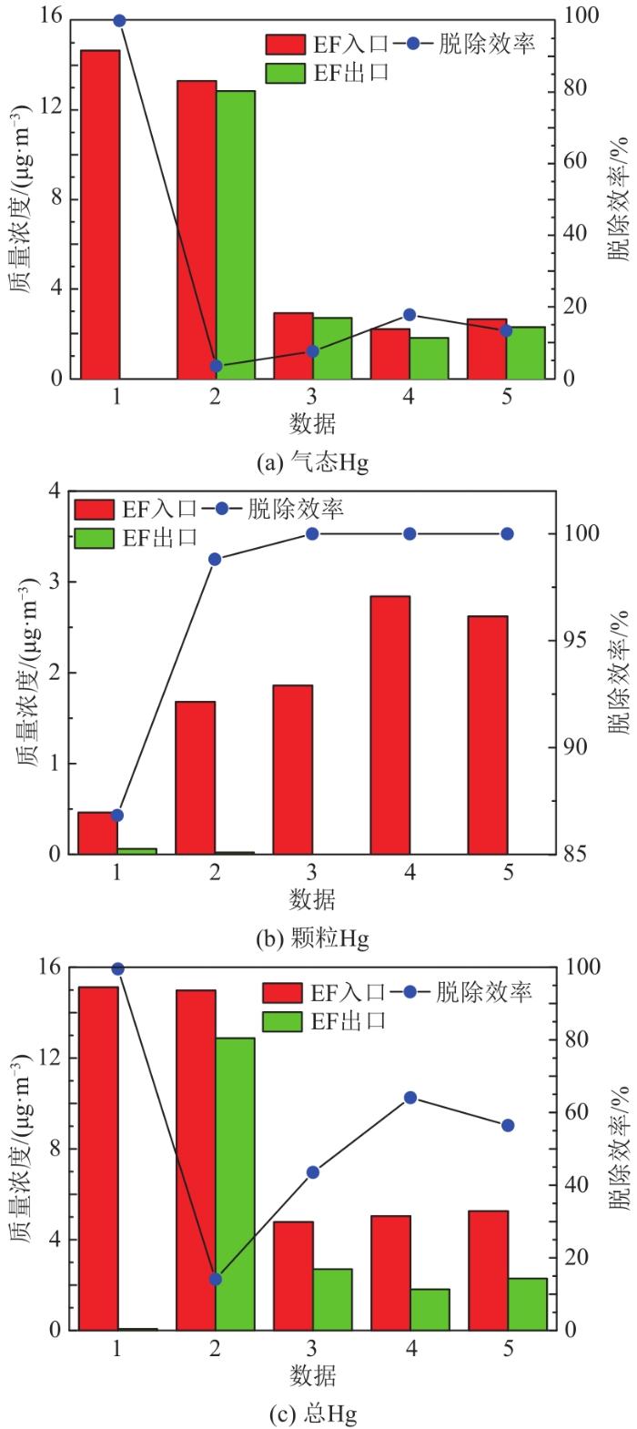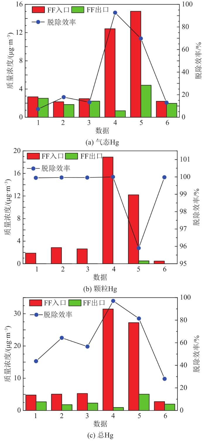 2.1 燃煤电厂袋式除尘器脱Hg效率分析