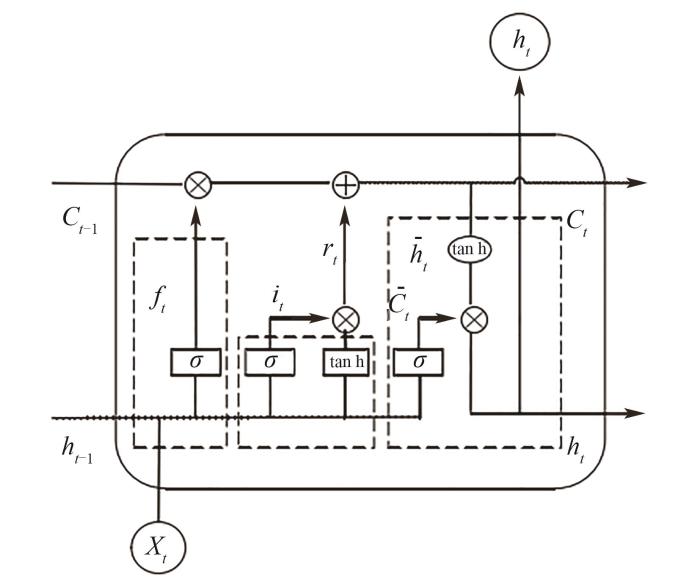 LSTM网络由输入层、输出层和隐藏层构成。与传统的RNN相比,LSTM隐藏是具有独特记忆模式的LSTM单元。LSTM的单元结构如图2所示。