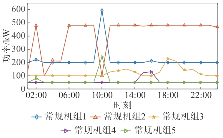 | 图6 基于分布鲁棒优化的常规机组出力情况 |