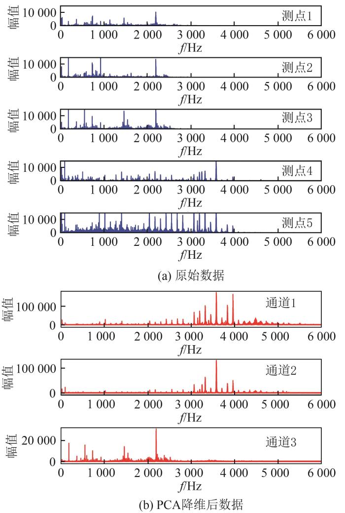 Frequency domain diagram of high-speed shaft vibration signal of a certain unit before and after PCA dimensionality reduction
