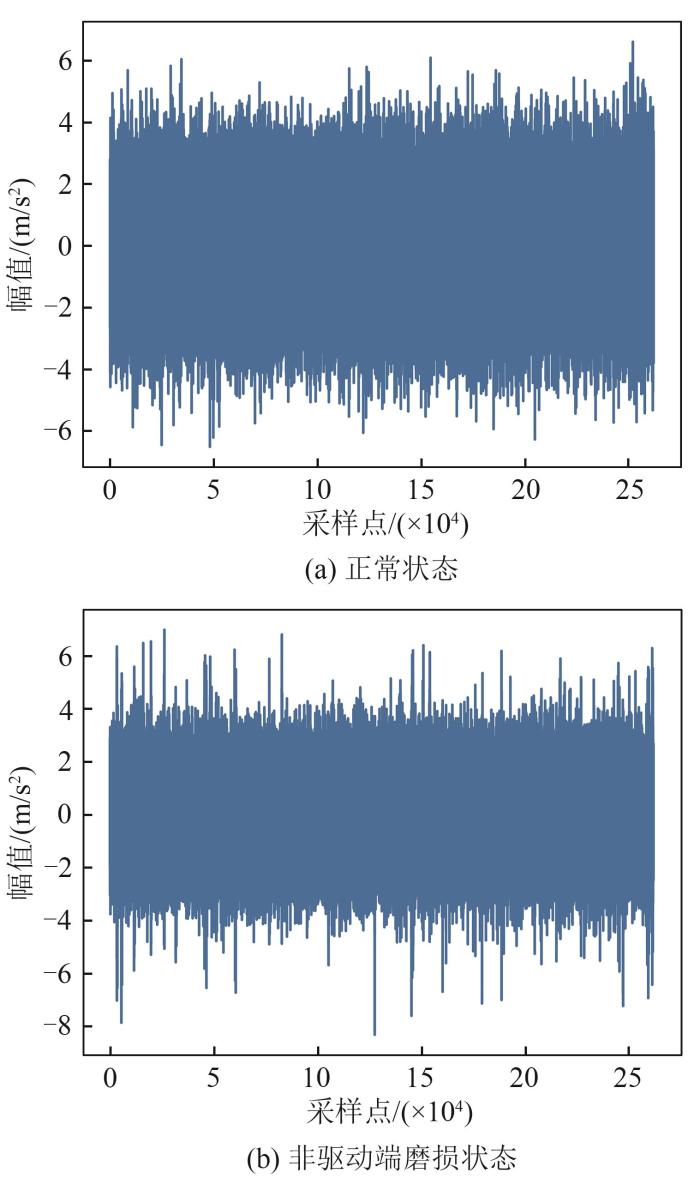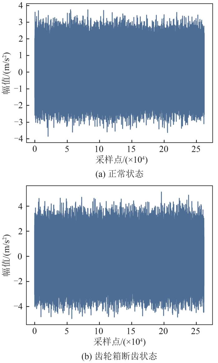 所采用的数据为实际采集的某风电机组数据,共包含齿轮箱正常与齿轮箱断齿2种状态,其中某个通道2种状态的振动信号数据如图9所示。