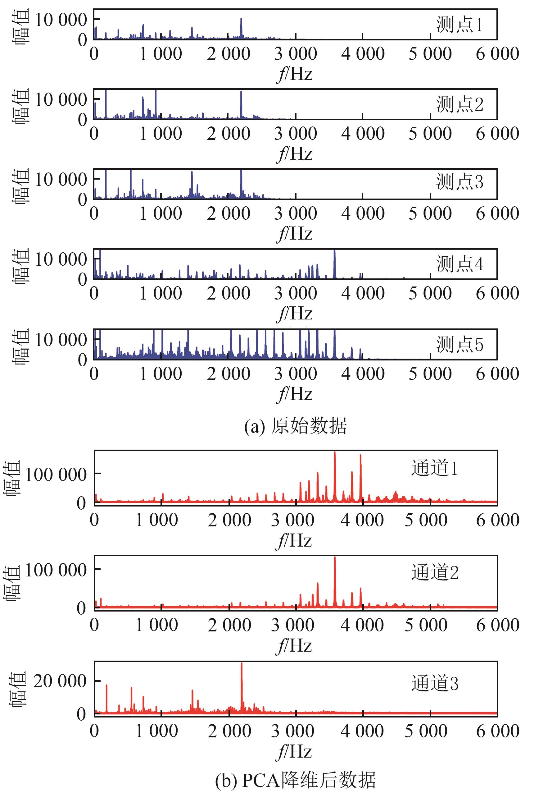 | Fig. 4 Frequency domain diagram of high-speed shaft vibration signal of a certain unit before and after PCA dimensionality reduction |