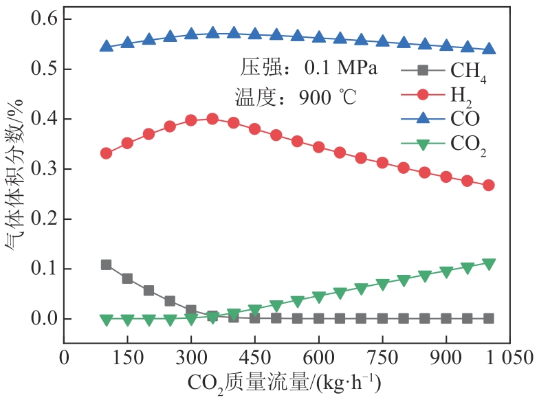 | 图2 CO2质量流量对气体体积分数的影响 |
