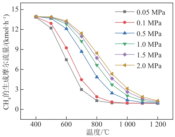 | 图4 压强对CH4生成摩尔流量的影响 |