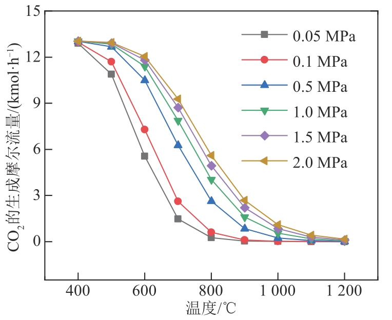 | 图7 压强对CO2生成摩尔流量的影响图 |